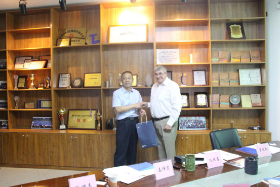 On the morning of June 10th, Thomas Gerald Anger, Director of the Special Projects for Middle East and North Africa and China, Director of MFIN Projects, and William Taylor Patryluk, Head of Global Bridge, came to our school for a visit. Chen Baoqi, Dean of MBA School, Luo Huaijing, Deputy Dean, and Jiang Weihong form SDUFE International Exchange and Cooperation Office met with the guests. Kong Pengzhi, from the teaching management department of the MBA School and Wang Yang from the admissions and student management department attended the meeting.